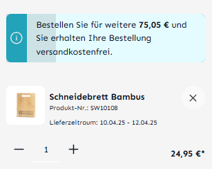 Zeigt dem Kunden an, wie viel noch fehlt, um versandkostenfrei zu bestellen. Das animiert viele Käufer, mehr Produkte in den Warenkorb zu legen – für kostenlosen Versand.